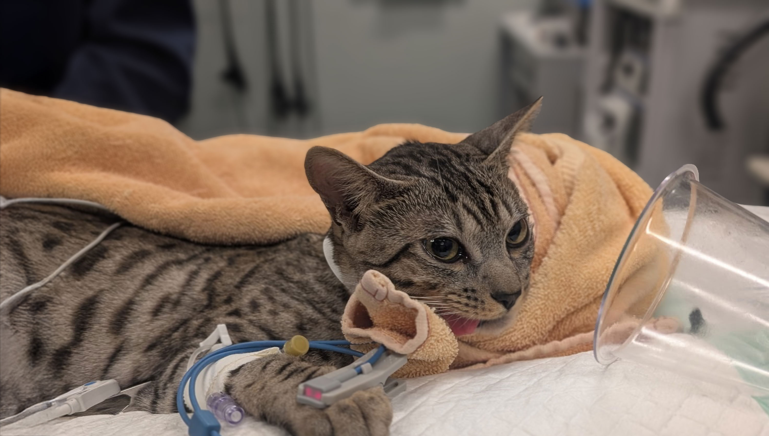 During the fall of 2025, the team at Angell Animal Medical Center performed life-saving surgery on Meadow, a one-year-old cat who had been abandoned alongside her kittens outside the Thomas J O'Connor Animal Control & Adoption Center. The Springfield shelter transferred them into our care, upon which our doctors discovered that Meadow had Patent Ductus Arteriosus (PDA) and required critical surgery to prevent congestive heart failure.