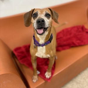 Bonnie is a sweet, senior lady who is looking for a home of her own. She loves to take leisurely walks and in true hound fashion, finding lots of good things to sniff. Bonnie came to us from a southern shelter so we don’t know much about her history, but she has been cute and curious since she came to us. Bonnie can be a little nervous with new people at first, but once she settles in she is an easygoing gal. She came to us with a small, low grade tumor that needed to be removed,so will need a good relationship with a vet to help keep her happy and healthy!