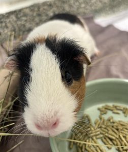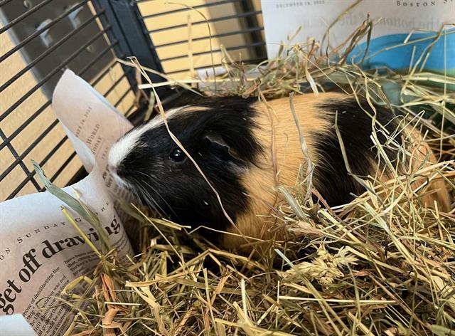 Meet Toph, a young and adorable female guinea pig looking for her next adventure. Toph is a girl that enjoys lounging in a pile of hay,nibbling on big lettuce leaves, and listening to soothing classical music. Toph used to be bonded to her sister Suki, but the pair began fighting several months ago. While their owners did everything they could to support these girls, they were unable to successfully reunite them fully. They are here at our shelter living side by side as neighbors with a wire divider between them. If they are adopted together, they are looking for skilled guinea pig owners that could support these sisters through their complex behavioral needs. We are also open to fully sperating them and sending them home to be only children in their new family. Please come in and talk to a staff member about either of these ladies if you are interested in helping them on their journey!