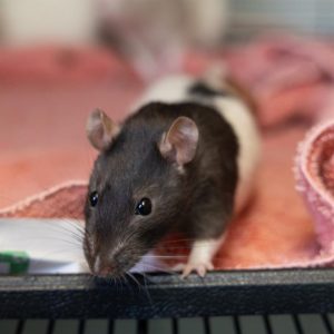 We recommend providing a safe indoor enclosure that allows the rat plenty of space to exercise. The minimum cage size should be 2’x2.5’x2’, with good ventilation (no glass enclosures) and must have a solid base. Preferably the shelter includes multiple levels, with appropriate use of linens or paper bedding and lots of rat appropriate toys. Rats should never be housed with other animals, each species should always have its own housing.