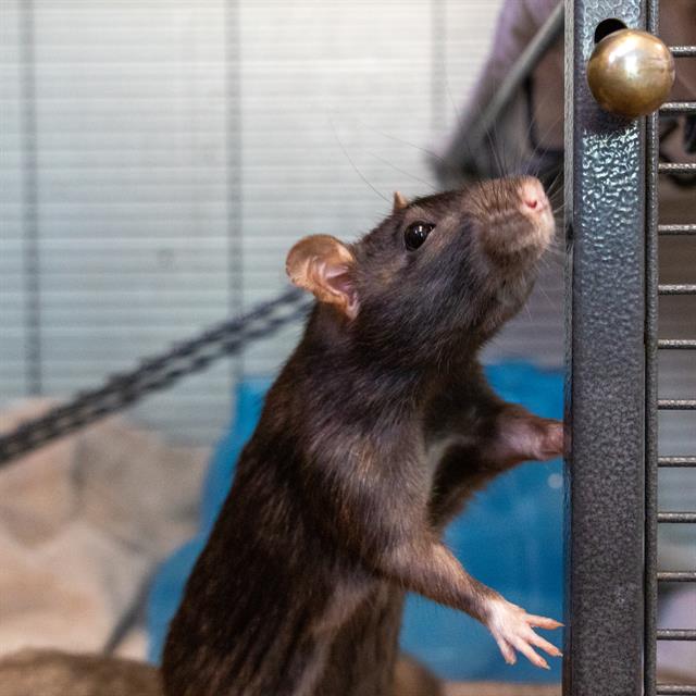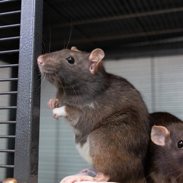 Rats are nocturnal, highly social and extremely intelligent animals! Due to the highly social nature of rats we prefer to match them with homes with existing rats, or to adopters looking to take home two or more rats. Rats can be food driven (and great foragers!) making them excellent animals to train. We always recommend the use of positive reinforcement training with your animals, and are happy to provide more information on this topic.