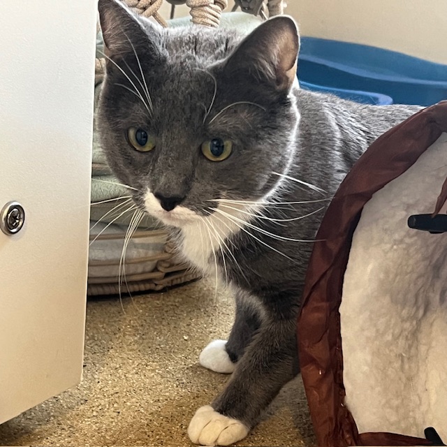 Meet Stormy, a sensitive 4-year-old boy who is looking for a calm, patient home where he can settle in at his own pace. Stormy will thrive with an adopter who understands feline body language and is willing to give him as much time as he needs to settle in. New people can be especially overwhelming for him—perhaps always—so visitors should give him the option to retreat somewhere safe. When it comes to affection, Stormy is a “pet-me-if-I-ask” kind of cat, so offering your hand first, taking breaks, and respecting his cues will help him feel understood and secure. With time, patience, and gentle handling, Stormy has the potential to truly blossom.