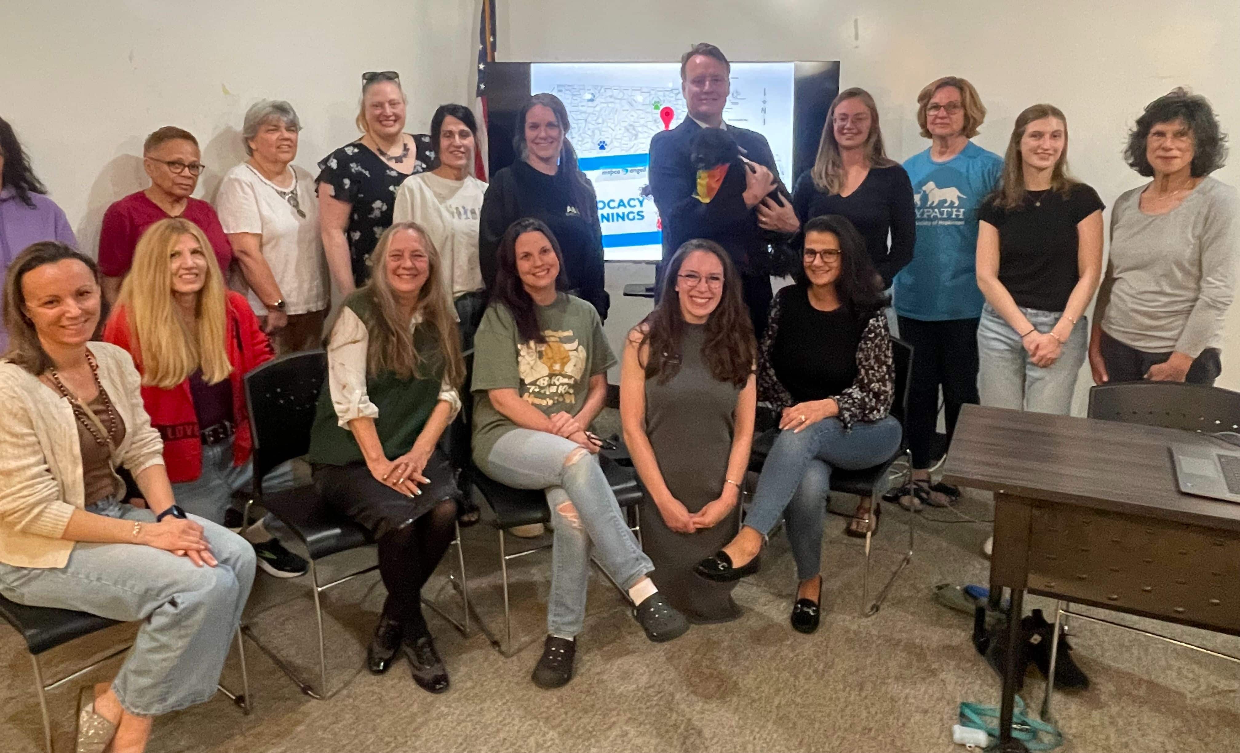 Legislators and staff also heard from Suffolk District Attorney Kevin Hayden along with Northwestern ADA Erin Aiello and Suffolk ADA Amelia Singh who shared information about their roles in prosecuting animal cruelty. Key staff spoke about the importance of pending cruelty prevention legislation. And of course, shoutout to Tootie, our adoptable pup who stole the spotlight and hearts alike. (Tootie was adopted soon after this event.)