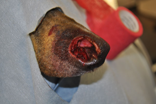 Dr. Mike Pavletic removed a portion of Dancer’s nose