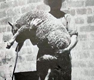 Officer Harry C. Smith rescues a lamb whose leg was broken when hit by flying timber.