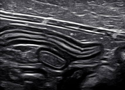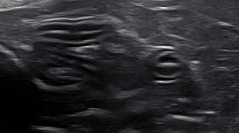 Figure 2b (above): Example of a normal small intestinal wall on ultrasound.