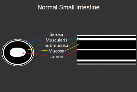 Figure 2a (above): Schematic of a normal small intestinal wall layering.