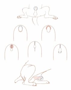 (E.) The incised skin margins are apposed, completing the dorsal closure. The dashed line denotes the location to incise the ventral margin of the ostium.