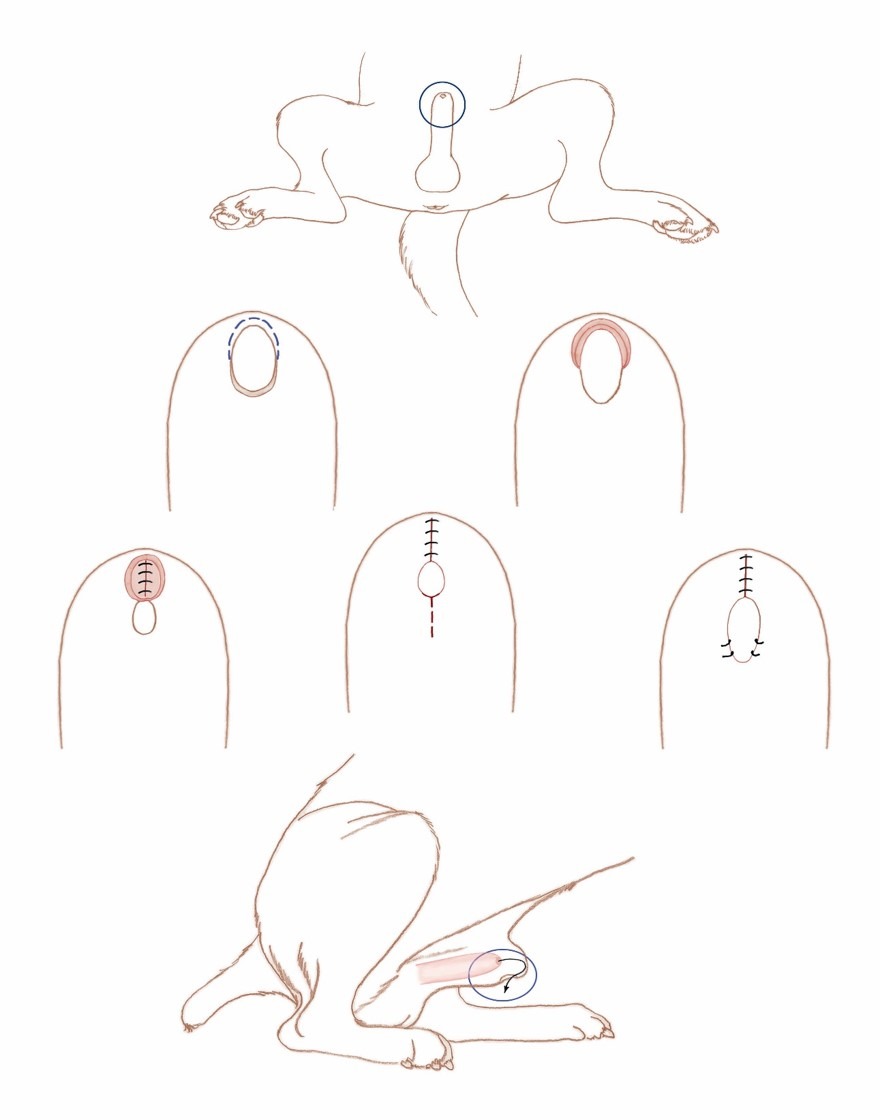 (From Pavletic MM. Preputial Reconstructive Surgery. In: Atlas of Small Animal Wound Management and Reconstructive Surgery, 4th ed. Hoboken: Wiley Blackwell, 2018; 750.)