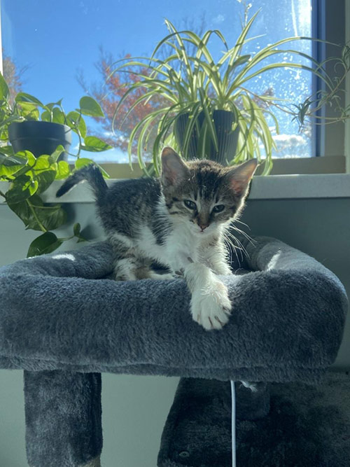 We are so relieved to share that Butternut made it through the night last night. She is still on the lethargic side, but after receiving round-the-clock care and fluids, she is more alert today than she was yesterday and she ate some kitten food this morning on her own. She still has a recovery journey ahead of her, but we are optimistic about her prognosis today.