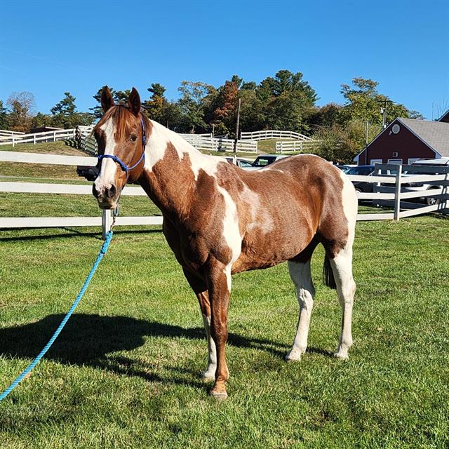 Whisky was described by his previous owner as enthusiastic, energetic, loving, loyal, and curious. In our short time getting to know him so far we would certainly agree with this assessment! He loves visitors, particularly children and is an absolute dream to groom and dote on. Whisky has had some time off from ridden work in the last 5 years but currently has no known limitations that would prevent him from getting back into work. While his serious riding days are behind him, he would be a good candidate for some low level riding. He’s got some fancy moves in there too! We have only worked with him on the ground so far, but he offers a very nice side pass and has previously done some beginning dressage. Whisky is also a perfect patient for both the vet and farrier.