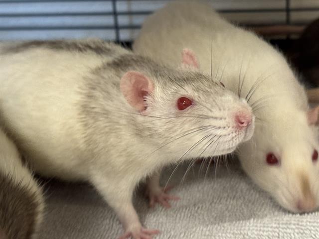 Rats are nocturnal, highly social and extremely intelligent animals! Due to the highly social nature of rats we prefer to match them with homes with existing rats, or to adopters looking to take home two or more rats. Rats can be food driven (and great foragers!) making them excellent animals to train. We always recommend the use of positive reinforcement training with your animals, and are happy to provide more information on this topic.