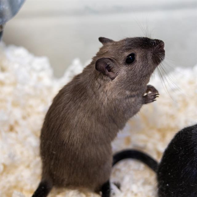 This gerbil is part of a large group of gerbils that came in together! The batch is friendly and social, both with their fellow gerbil companions and to people. They will need to go home in pairs (or more) or to an existing (same-sex) gerbil companion already existing in the home.